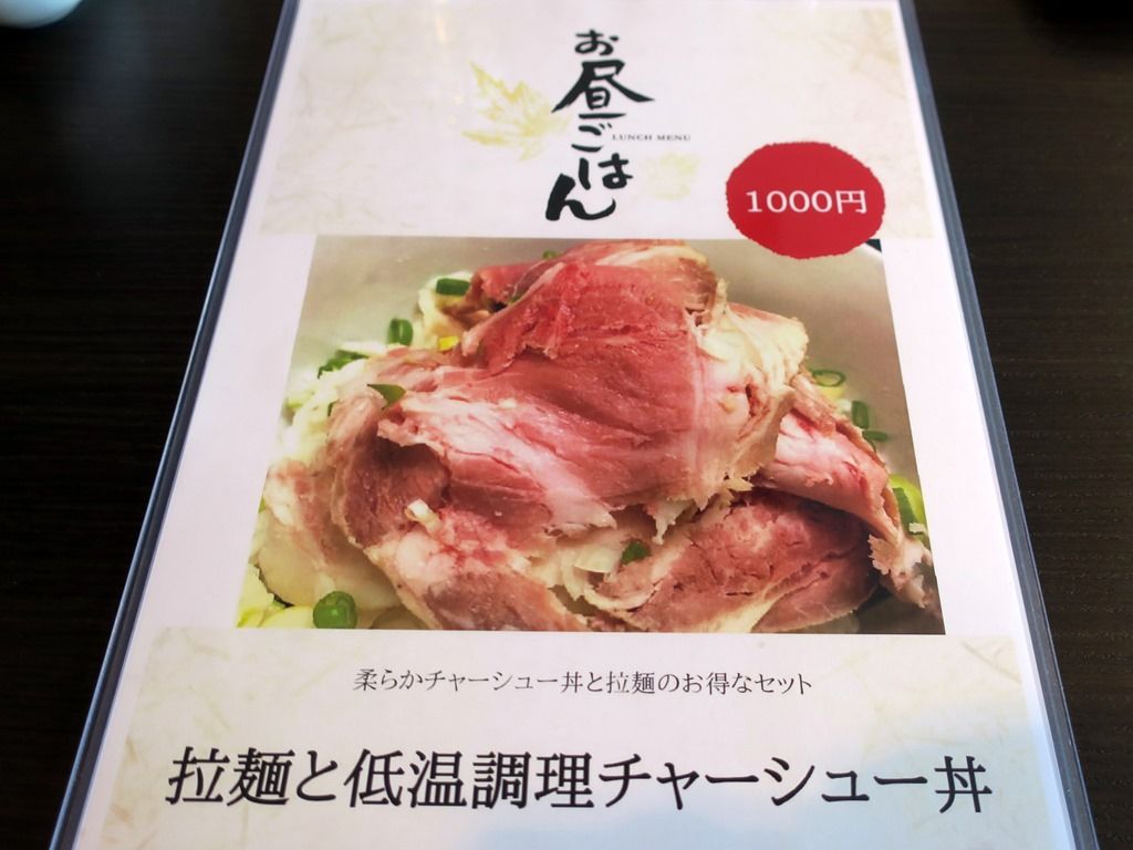 ランチタイムは拉麺と低温調理チャーシュー丼セット1000円。