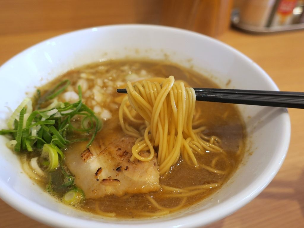 麺はストレート中細タイプ。マニアックなパツパツではなく食べ手を選ばないニュートラルなスペック。