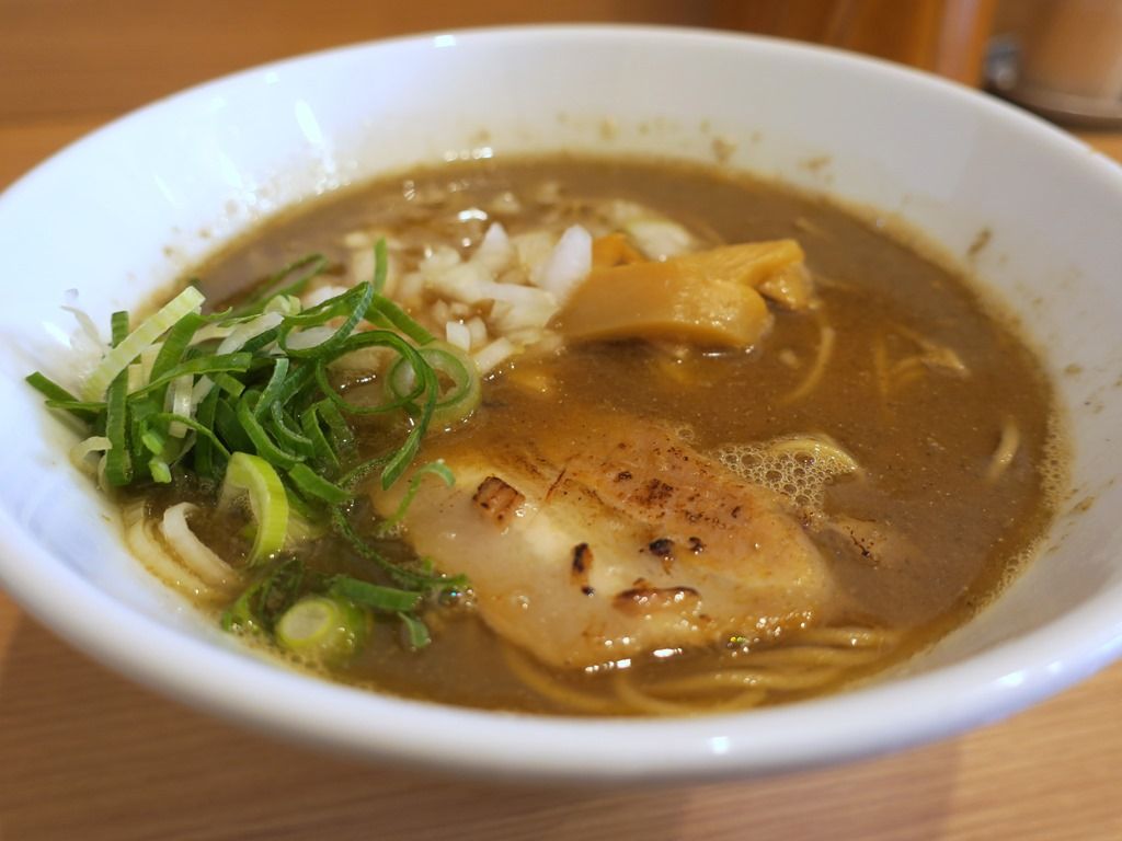 スープは、ぽってりととろみのある豚鶏煮干醤油味。他店の濃厚煮干しスープの多くが農高鶏白湯ベースに煮干しを効かせたものですが、こちらは豚骨も使用で味にコクと深みが増した感じ。自分で極上って言っちゃうのはアレですが、たしかに煮干しのインパクトは強烈。濃厚煮干しラーメン食べたっていう満足感は高く、とっても美味しい!