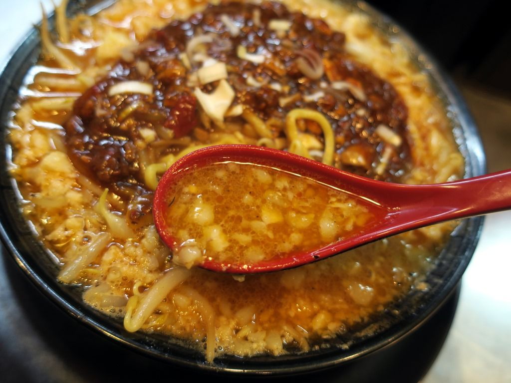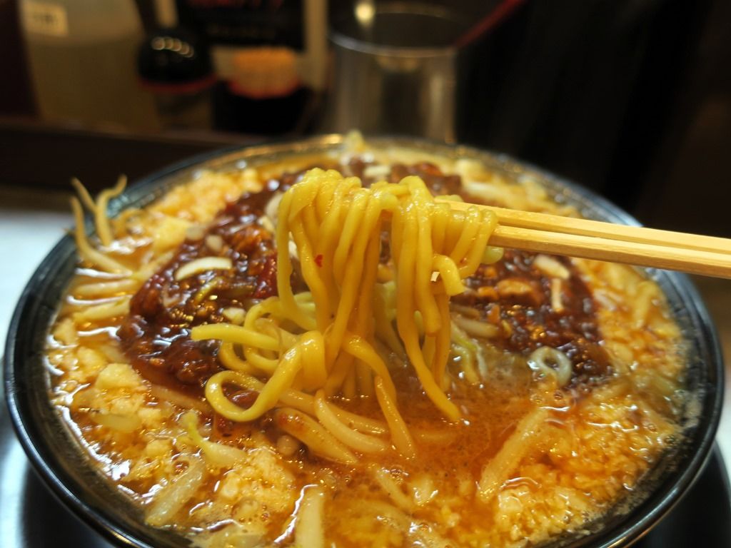 スープはさらりとした動物性の味噌味。オイリーでニンニキーで甘辛ですが、どちらかといえば甘さ優勢。コテコテでガッツリ感もあります。麻婆餡はライトなピリ辛微痺で、単体だと辛痺党にはちょっと物足りない。ただ、コクのあるスープに溶け出すと甘めのスープがいい感じに刺激的になって常習性のある味わいに。やはり麻婆が載ったタンメンの蒙古タンメンと比べるとおとなしい感じはしますが、なかなか美味しい!