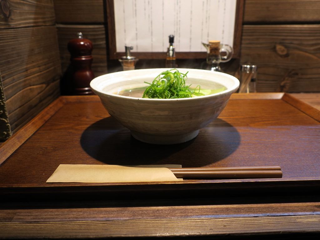 和食器のような美濃焼の器で着丼。ふわっと燻製香が広がります。
