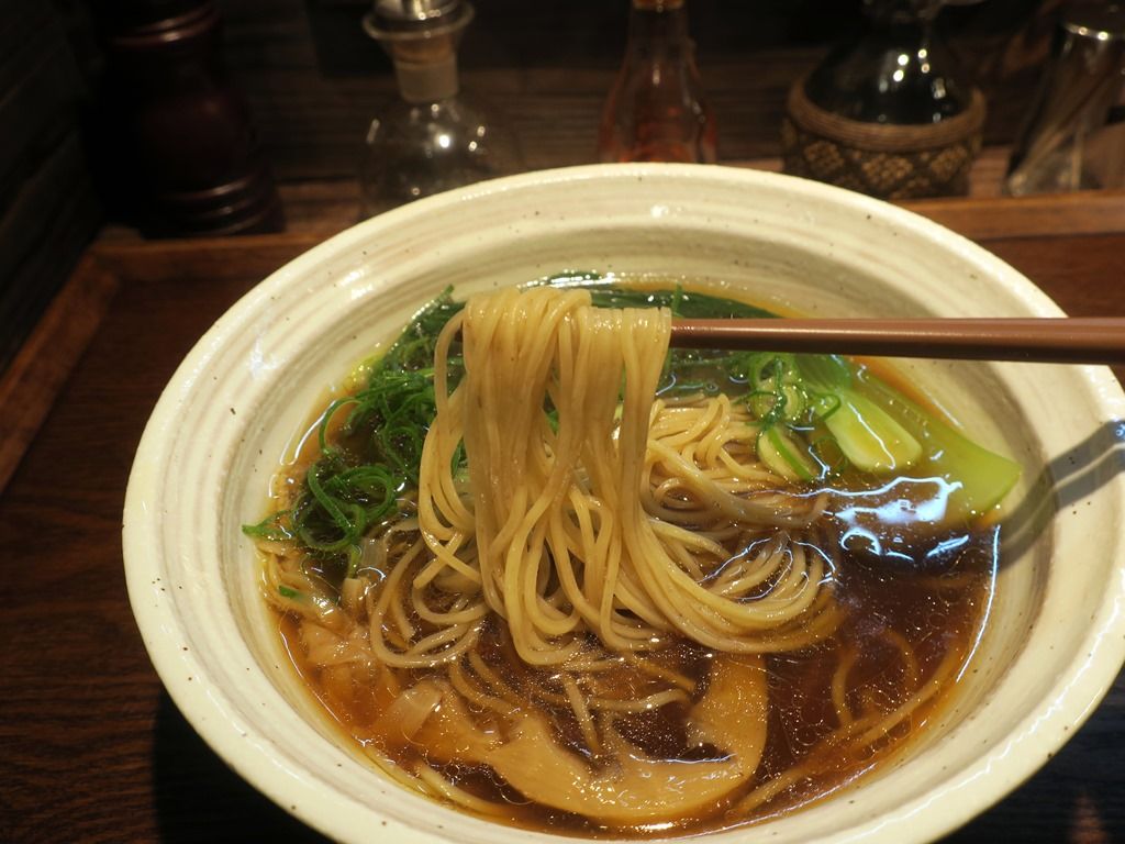 スープはさらさらの清湯醤油味。薀蓄によると、ベジブロスに国産地鶏のガラ・モミジを加えたスープで無化調。カエシは牡蠣・鯵煮干・鯖節を加えて寝かせたものを燻製に。ってことで燻製香はカエシ由来。香りよく香ばしく美味しい!ですが、やや甘めでその甘さが徐々に立って来る感じが好みが分かれそう。