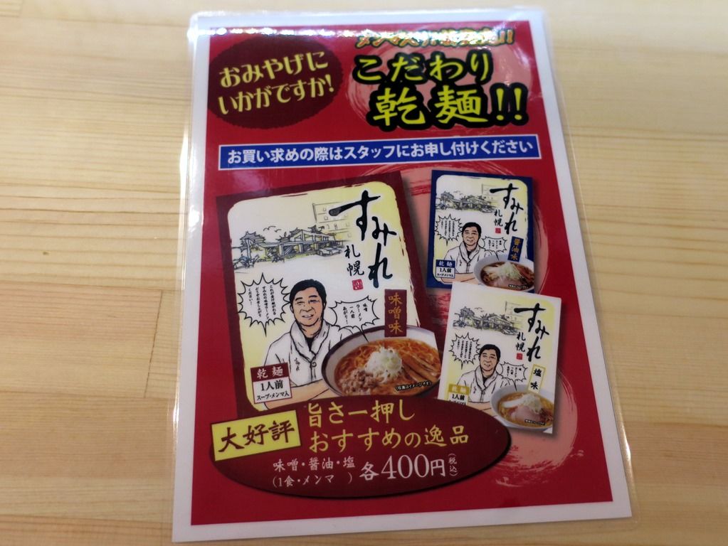 初日オープンから1500食限定ですみれのこだわり乾麺プレゼン。まだ残ってましたが、味噌・正油・塩どれが当たるかは運次第。自分は塩でしたので、お願いして味噌・正油は実費購入しました。