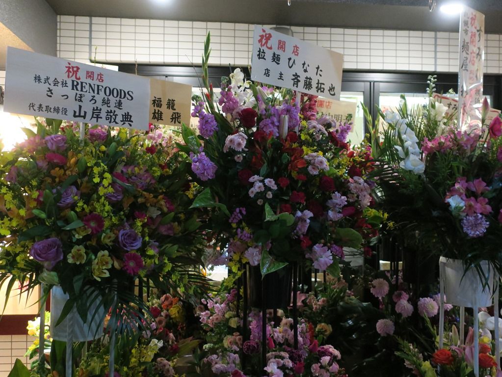 店頭にはおびただし数の祝花。