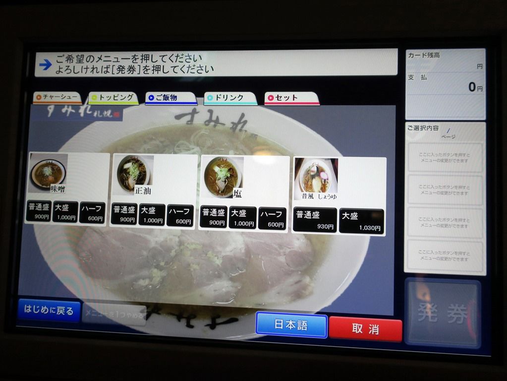 入店すると、タッチパネル式券売機で食券購入です。