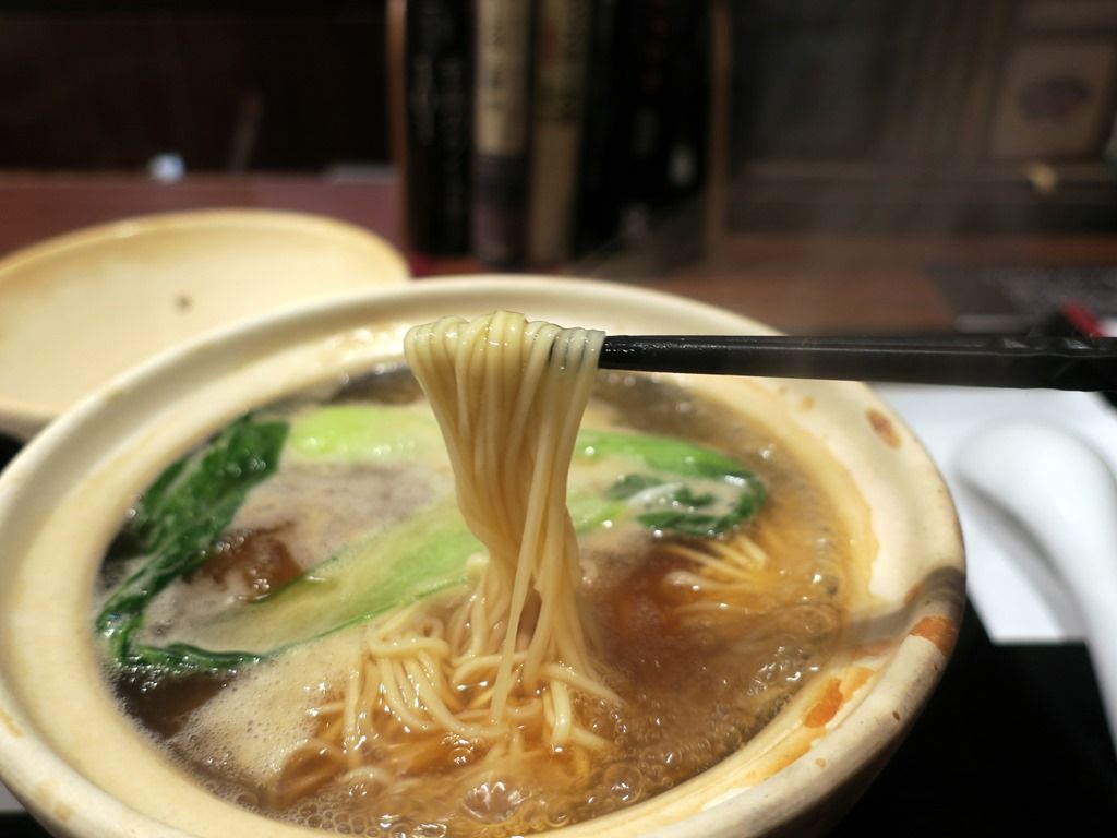 麺はストレート細麺。須崎の鍋焼きラーメンに似た細麺で、煮込んでも食感が変化せず、最初っから最後まで柔らか。取り小鉢が無いので直接フーフーしながらいただきます。