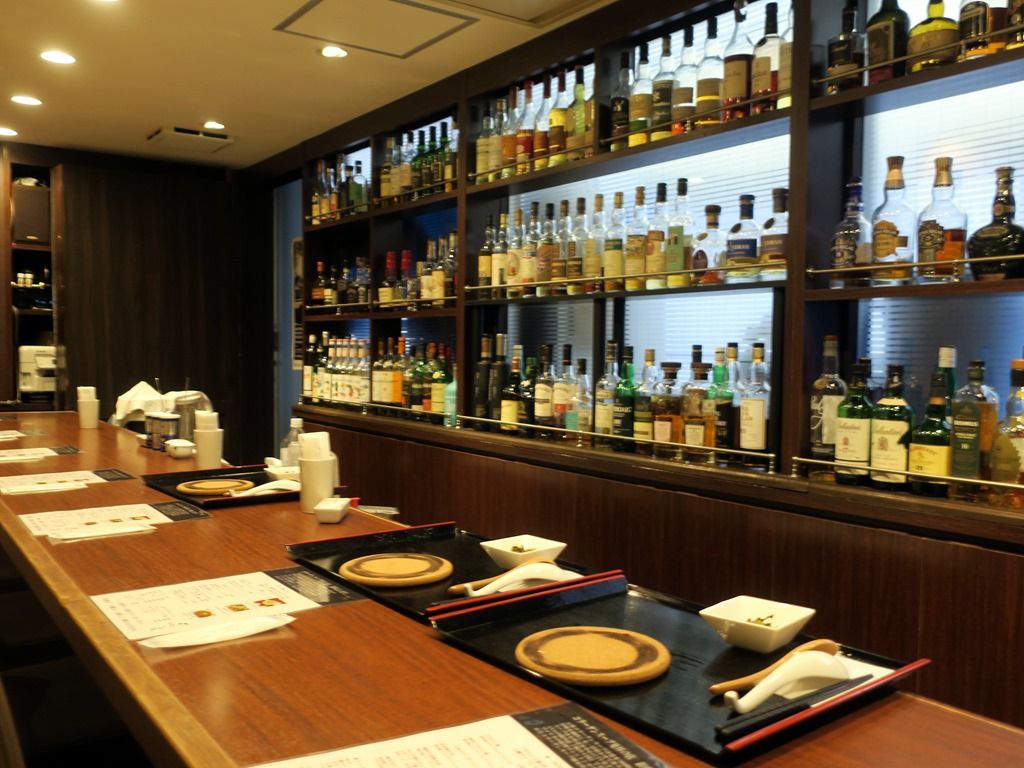 店内は厨房が別室で、奥に長いバーカウンター7席、奥に4人卓x1。13:30頃到着で先客3、後客3。