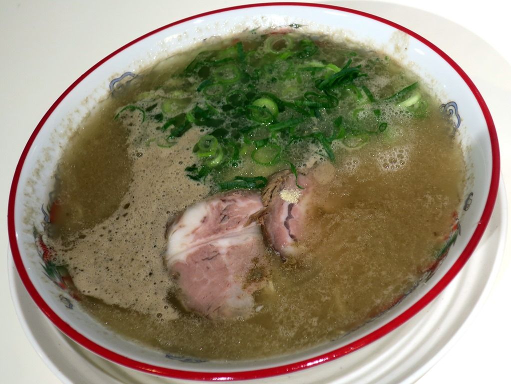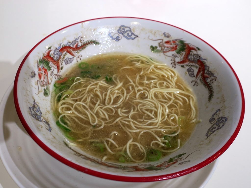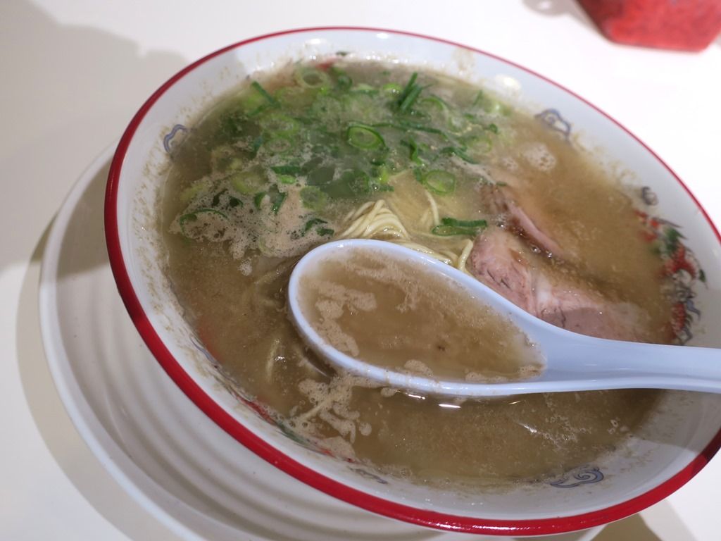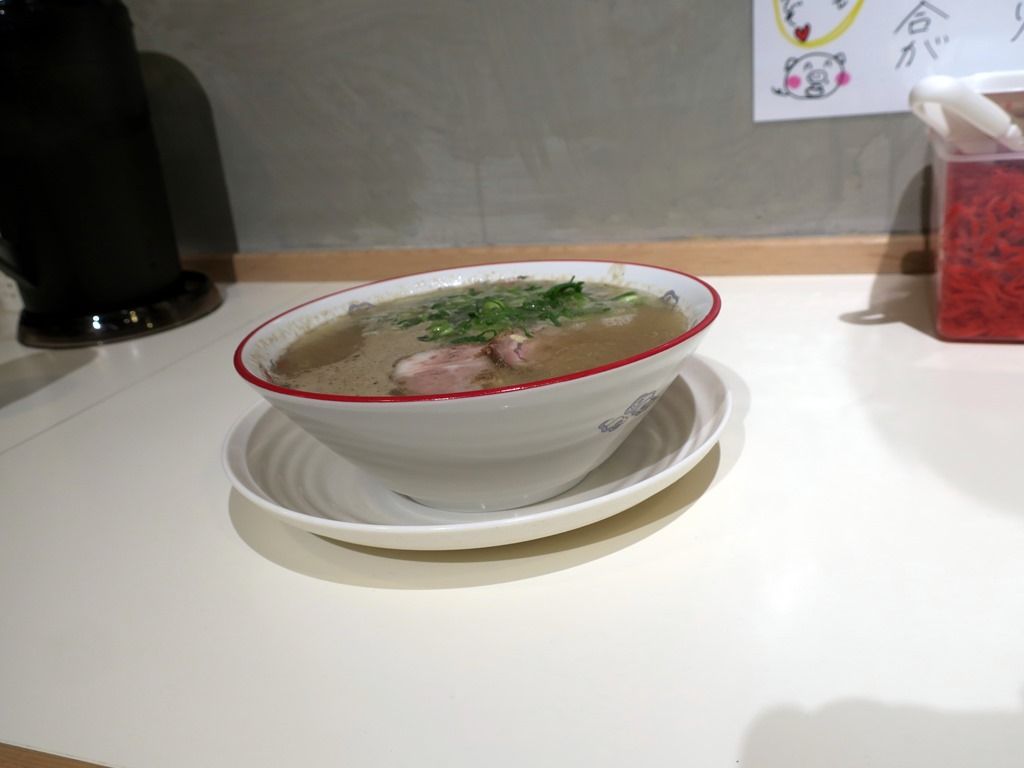 主なメニューは、ラーメン750円、ワンタンメン950円、替え玉150円、一口餃子550円、他。一口餃子はわずか3cmのこれぞ博多餃子というミニサイズ。レセプションのこの日はラーメンと替え玉のみ提供。