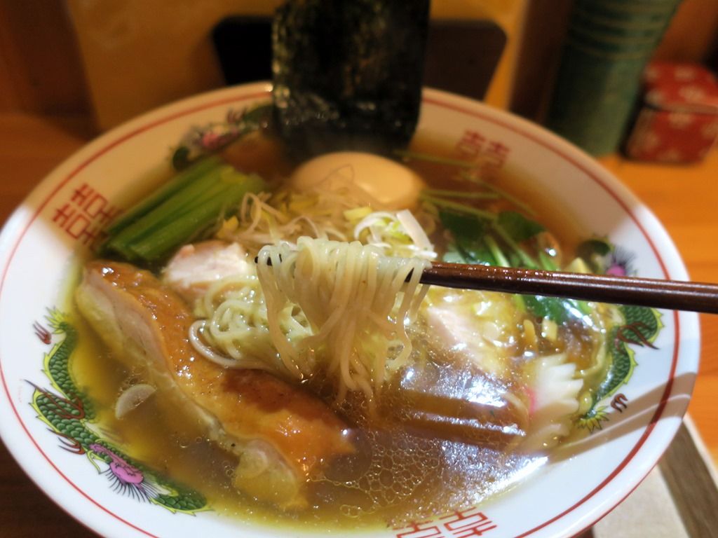 麺はストレートの中細タイプ。佐野実さんが弟子にしか卸さなかったという支那そばや製。全粒粉入りで、しなやかでシルキーなのにしっかりとした強いコシがあります。