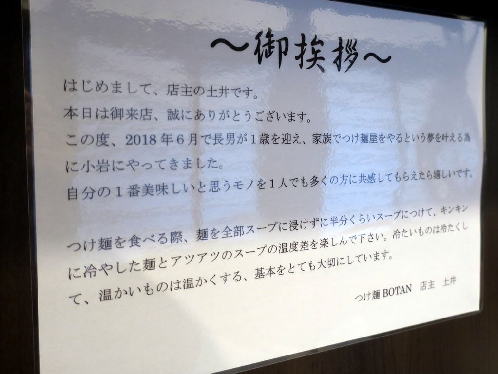 2018年7月25日、小岩の新店「つけ麺 BOTAN」へ。