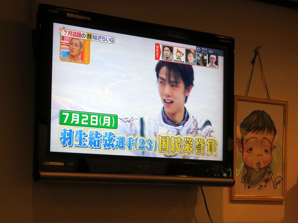 BGMはテレビ放送。テレビの隣の似顔絵はお子様?