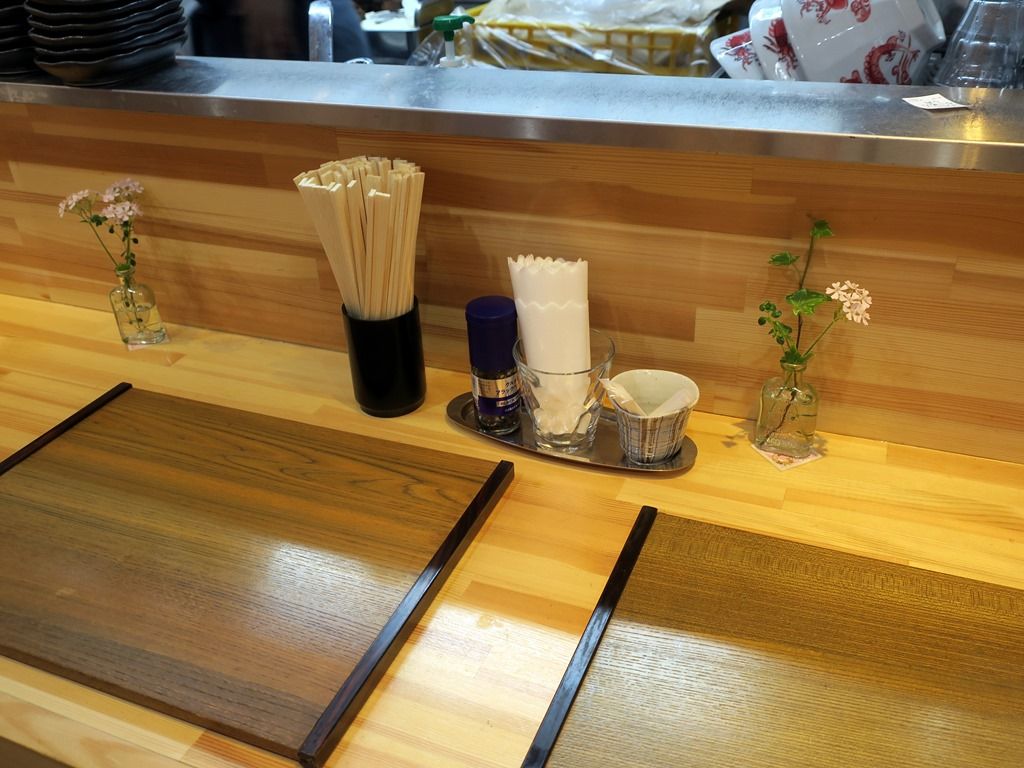 BGMは無し。箸は割り箸。卓上調味料はGABANブラックペッパー,