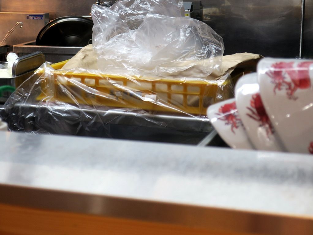 自家製の麺はストレート中太タイプ。厨房に三河屋製麺の麺ケースがありますが、自家製麺を入れとくケースです。たまたまですが、数分前に切り出したリアル切りたて麺。すべすべとなめらかで、ぶりっともちっと食感が絶品。ほんと旨いです。