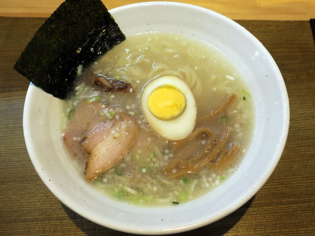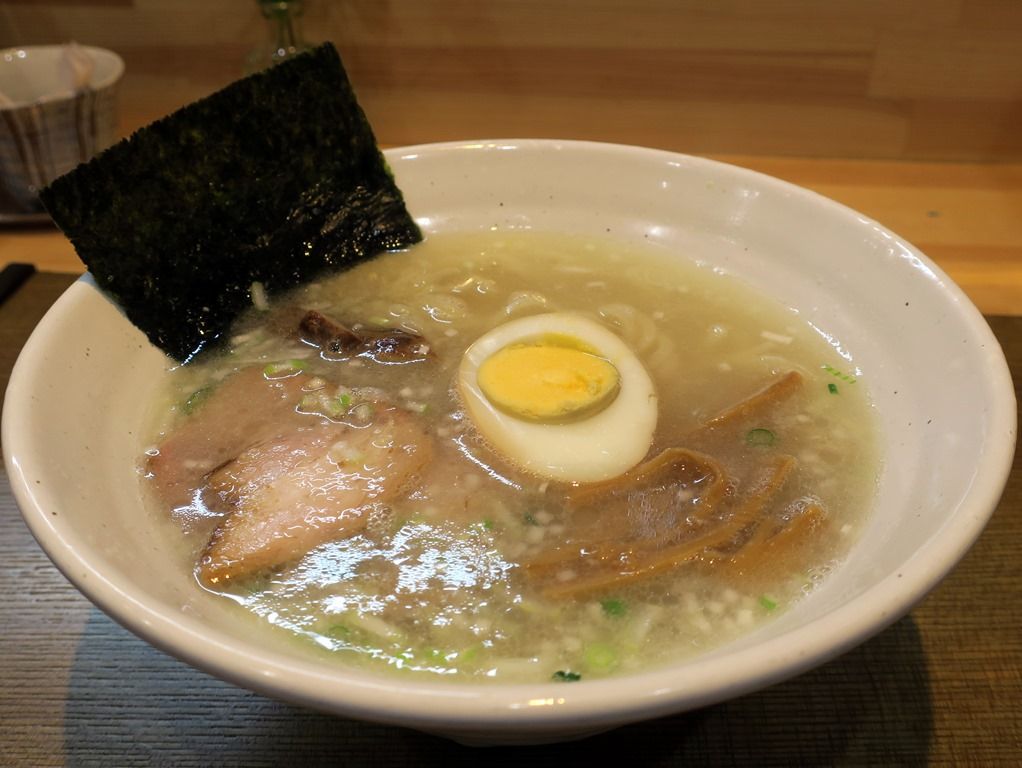 ニ代目げんこつ屋ではいつも醤油でしたので、今回は旧げんこつ屋以来のしおで。丼は赤い模様、青い模様、無地の3種類あって、この日はメニューによって特に区別なく盛り付けてた模様。