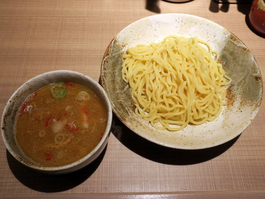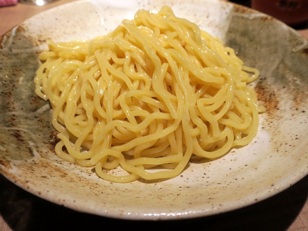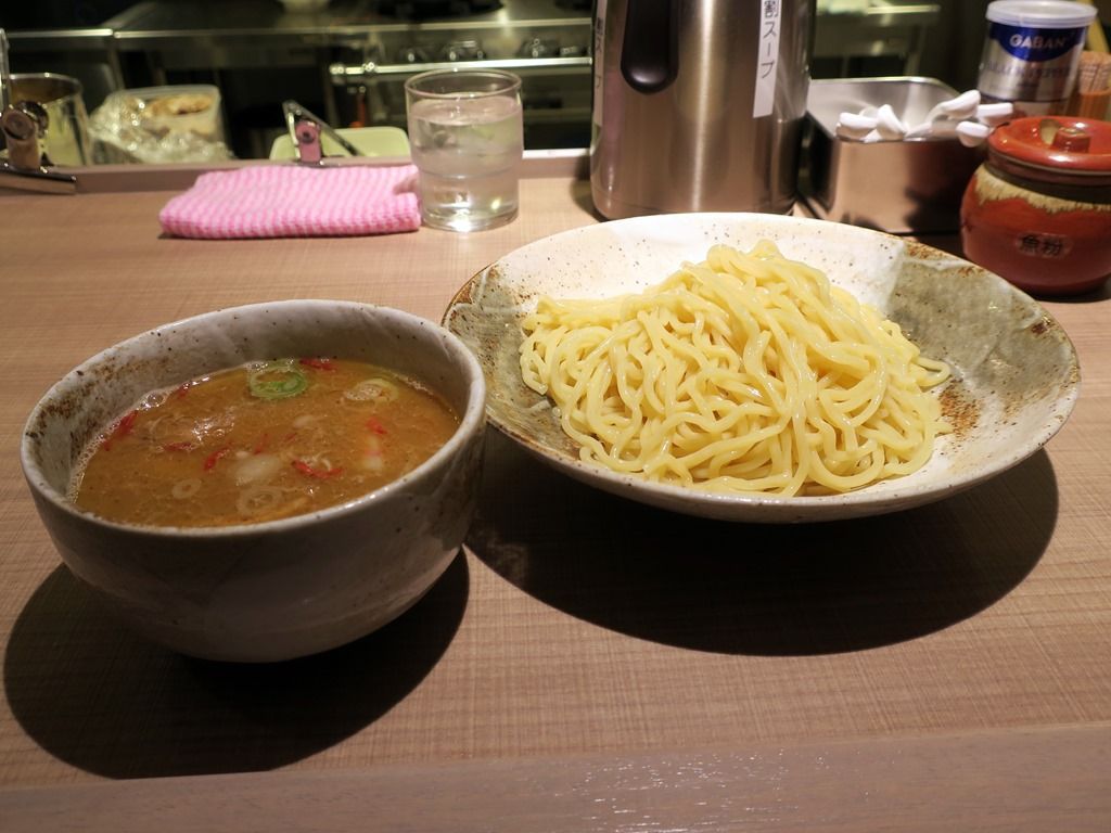 移転前に中華そばをいただいたので、今回はつけ麺で。最初に麺、後からつけ汁と、つけ汁の冷めが最小となる正しい順番で着丼。