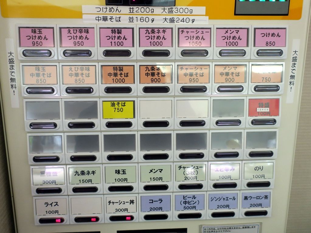 主なメニューは、つけめん850円、特製つけめん1100円、中華そば750円、特製中華そば1000円、他。麺量はつけ麺が並200g大盛300g、中華そばが並160g大盛240g同料金。特製は増量した具が別皿で、SNS映えするビジュアルに。食券を渡すと「大盛りにしますか」と聞かれます.