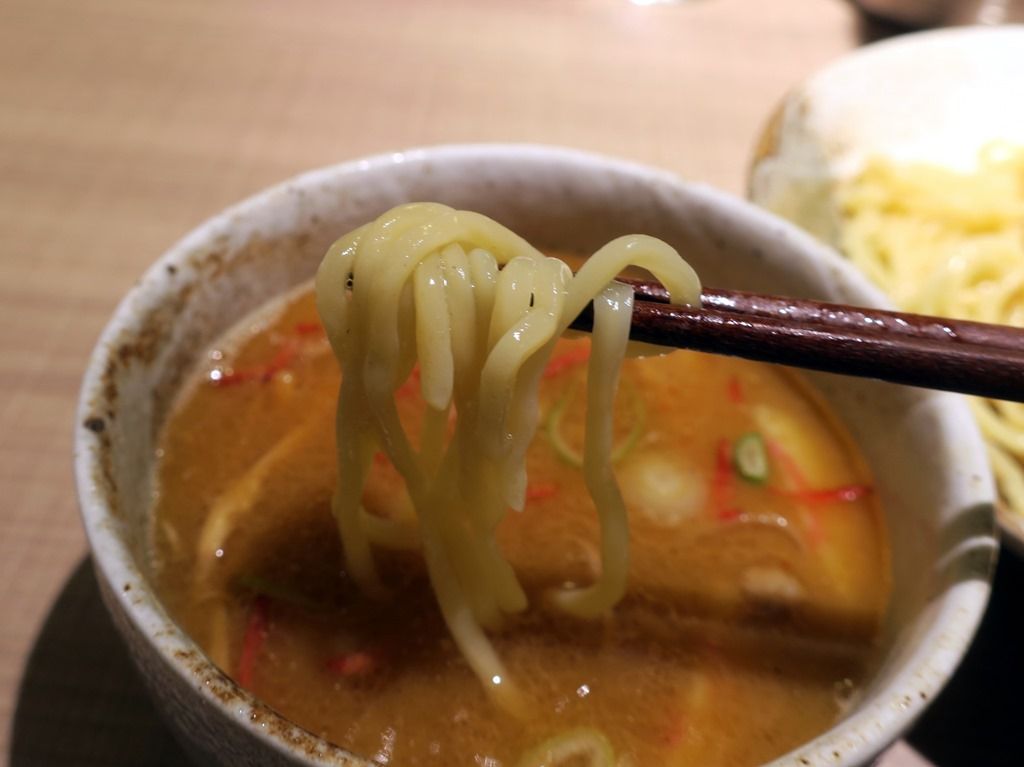 つけ汁は動物魚介の醤油味。麺彩房風の典型的なまたおまつけ麺ですが、バランスが実に秀逸。つけ汁と麺のコンパチビリティが抜群に素晴らしく、いくらでも啜れそう。