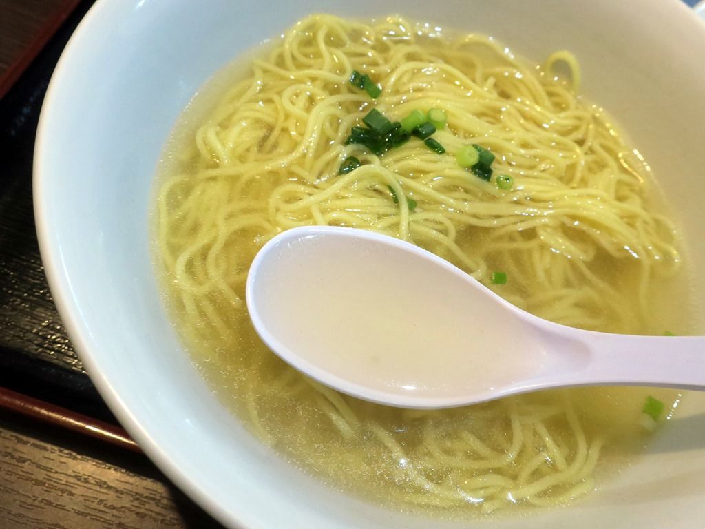 スープはさらさらの清湯塩味。思っていたよりしっかりとした出汁が感じられて、麺の湯切りが甘いせいかちょっと麺の粉っぽさが感じられるものの、なかなか美味しい!
