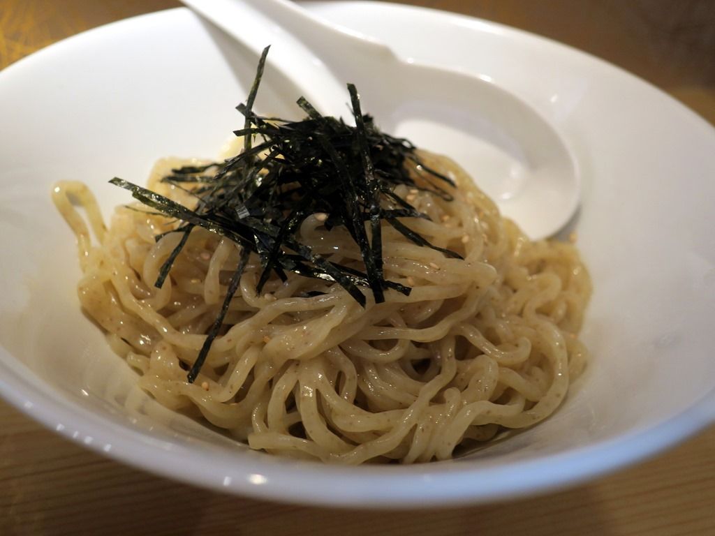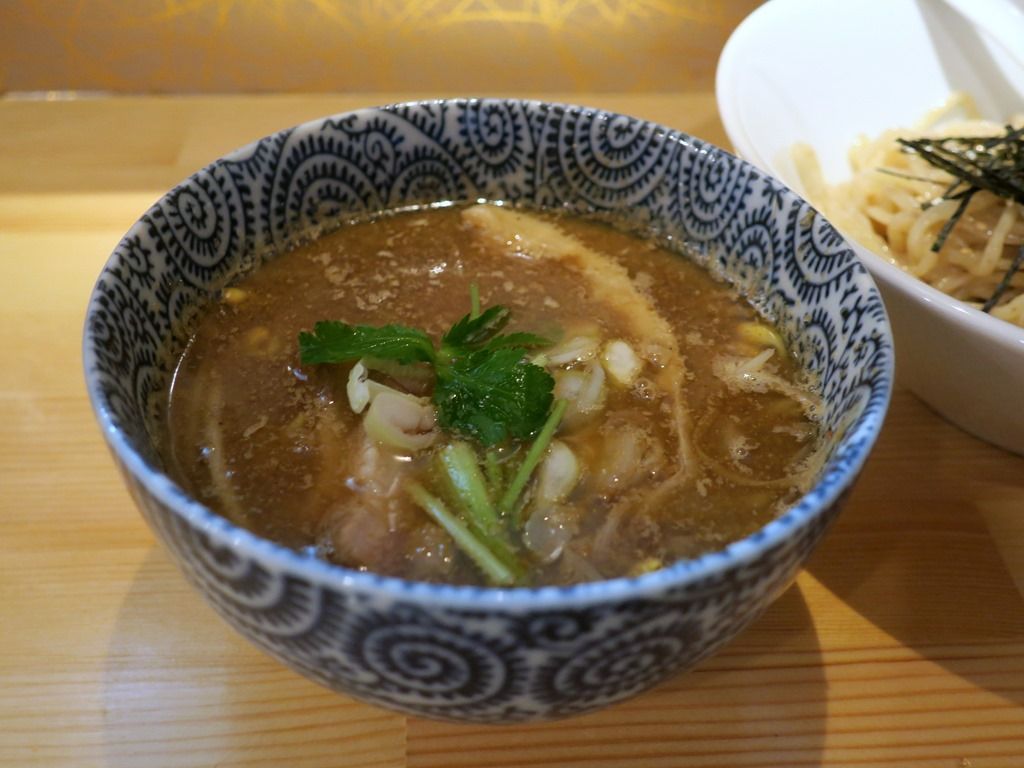 つけ汁は、様々な食材のエキスが溶け出した様なスープは、甘めでやや荒削りな印象。ただそれが個性的な味わいを醸していて、ユニークでオンリーワンな味を演出。