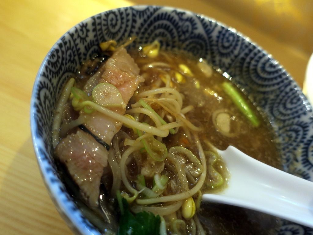 麺の様に長いもやしもシャキシャキでテラ美味。一味と山椒オイルが甘めのスープに喝を入れるパワーアイテムとして活躍します。