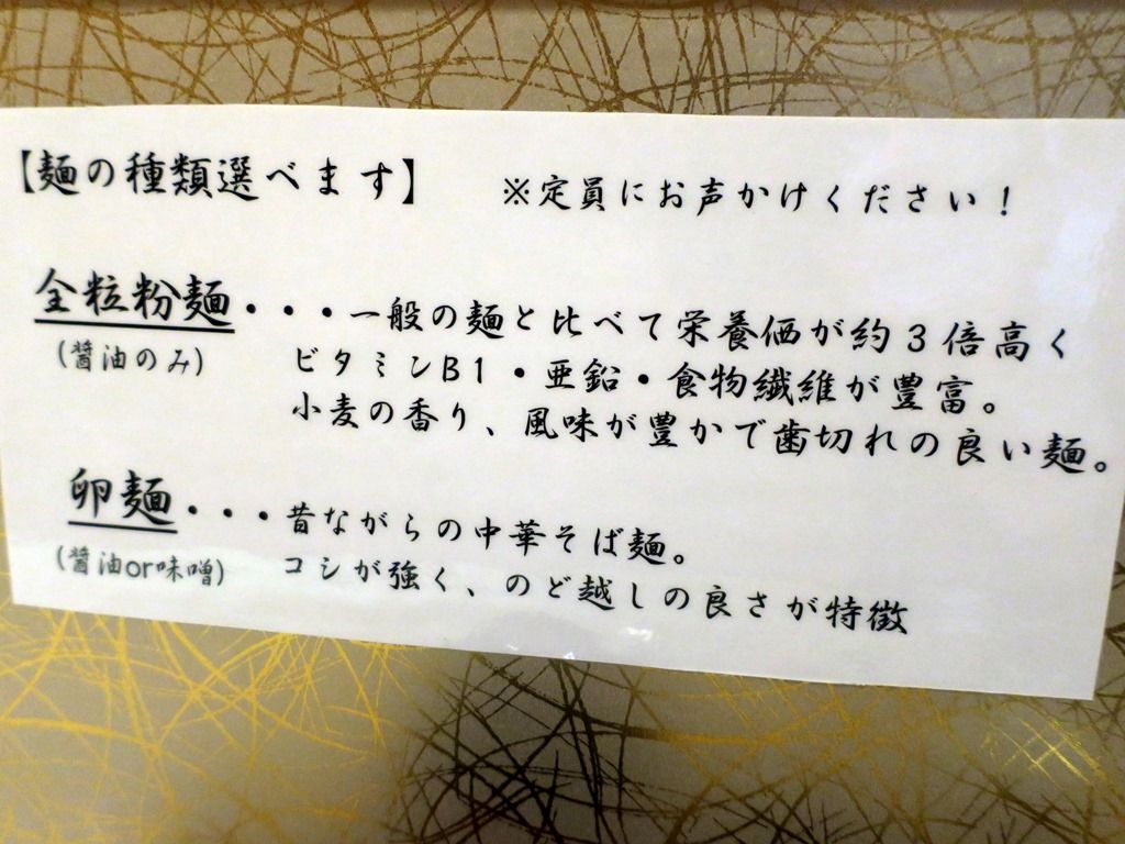 また、醤油つけは全粒粉麺・卵麺から選択、味噌つけは卵麺縛りで、醤油つけの場合麺の種類も聞かれます。店内は、厨房を囲むL字型カウンター8席(6席・2席)。20:50頃到着で先客2後客1。