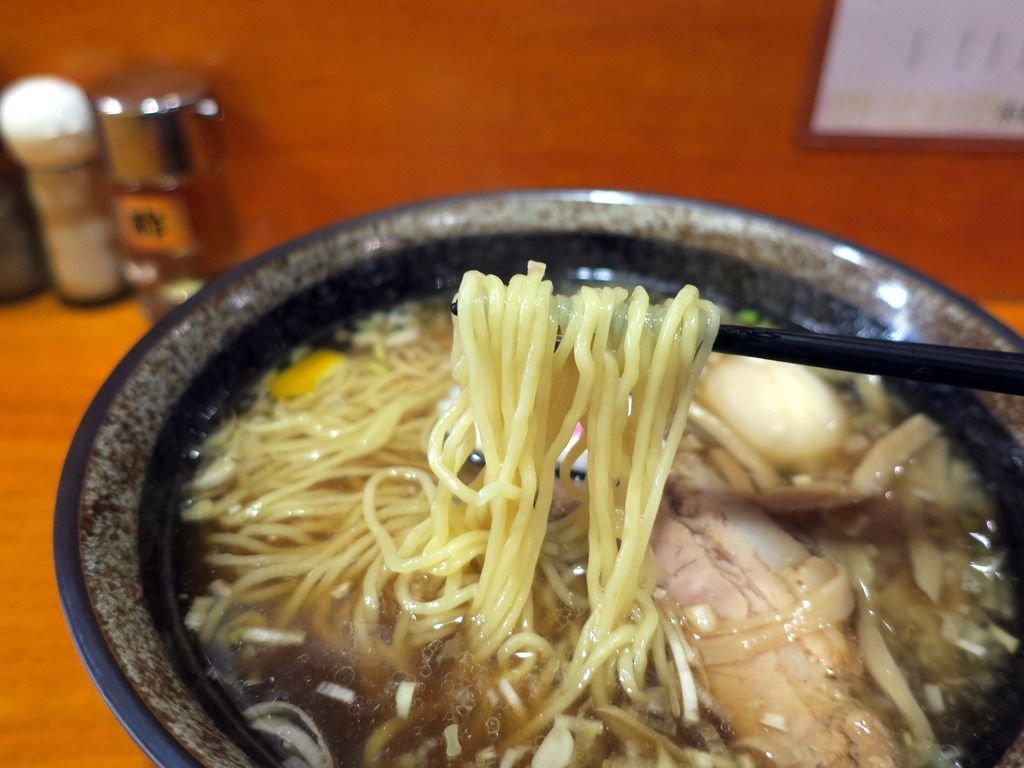 スープはさらさらの清湯醤油味。煮干しの香りがめときそのままで、在りし日の懐かしいメモリーがフラッシュバック。表面をラードの層が覆って最後まで熱々が持続。香ばしい風味で食欲がそそられ、煮干しがしっかり効いたうっとりほれぼれする味わいが絶品。めときとくらべると出汁もカエシも少しずつ薄めな気がしますが、記憶の美化作用かな!?めとき云々ではなく永福系としても十分にレベル高く、すごく美味しい!