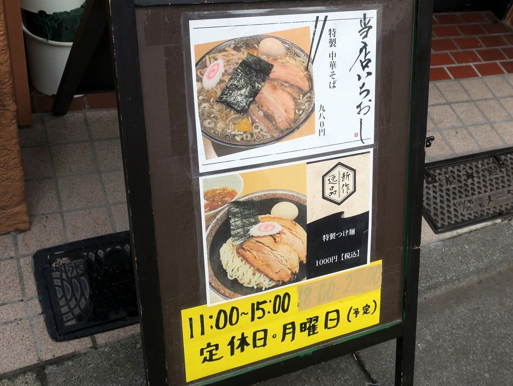 主なメニューは、中華そば830円、つけ麺850円、特製プラス150円、チャーシュー丼タレ・ニンニク各350円、他。