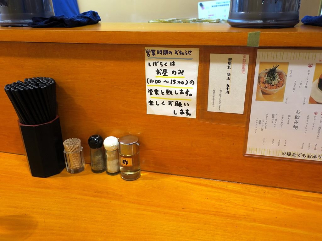 営業時間は当面昼のみ。初日のみ20時近くまで夜営業したようですが、2日目以降は昼のみに変更。落ち着いたら夜営業も再開予定とのこと。