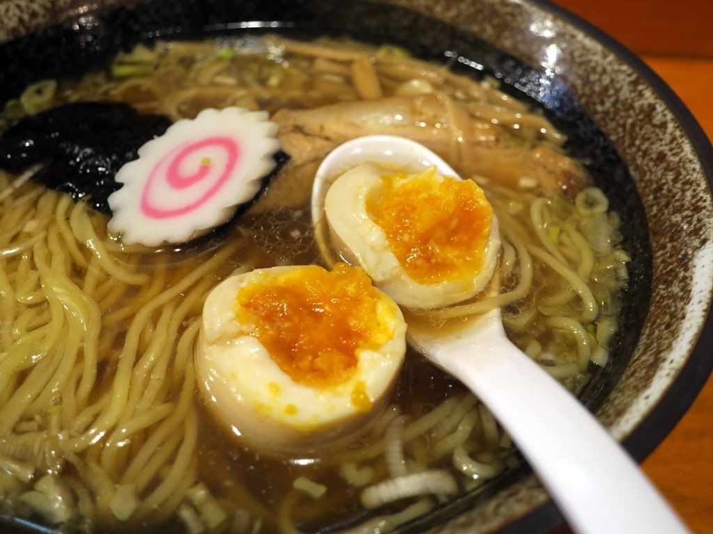 具は、チャーシュー、メンマ、ナルト、海苔、きざみねぎ、柚子皮、小盛りサービスの味玉。