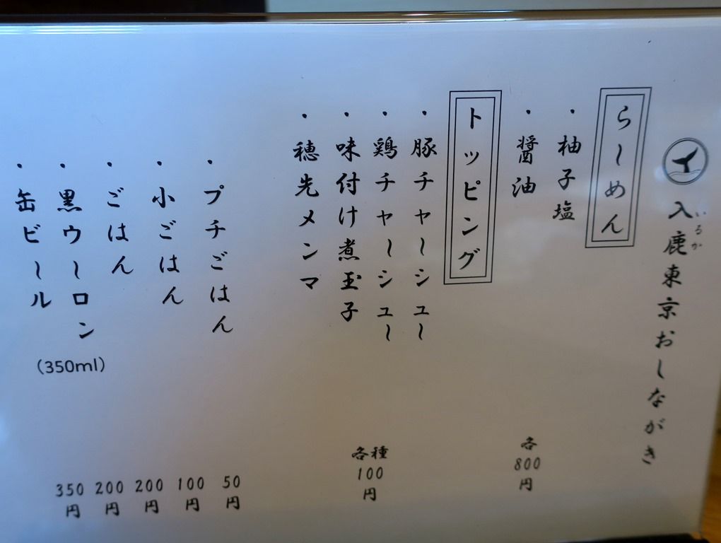 主なメニューは、柚子塩らぁ麺800円、醤油らぁ麺800円、他。