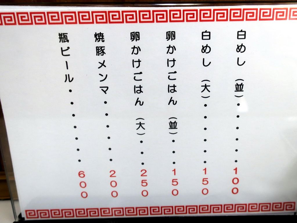 券売機は無く後会計制。主なメニューは、味噌ラーメン・塩ラーメン750円正油ラーメン 各750円、他。