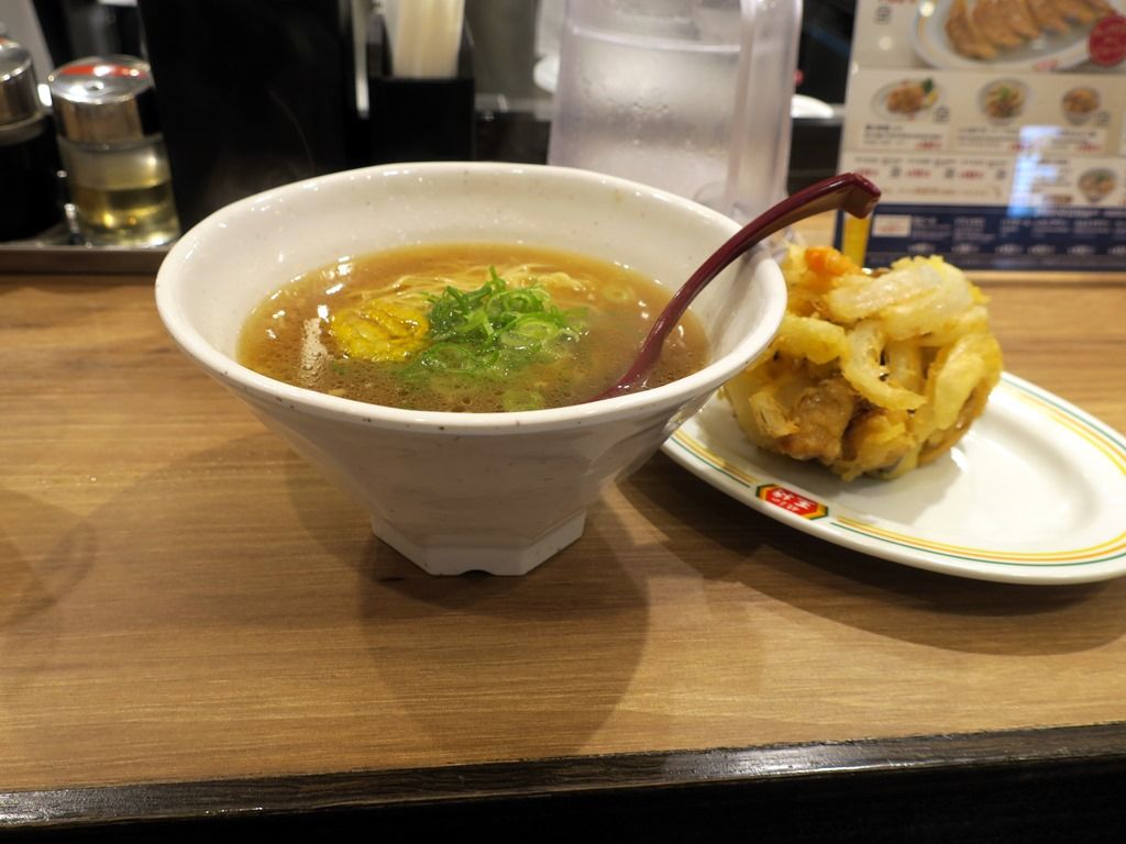 券売機は無くメニューを見て注文、伝票方式、食後レジにて後会計制。主なメニューは、かき揚げラーメン680円、餃子ラーメン580円、餃子の王将ラーメン500円、白醤油ラーメン640円、中華そば550円、ひと口餃子180円、他。