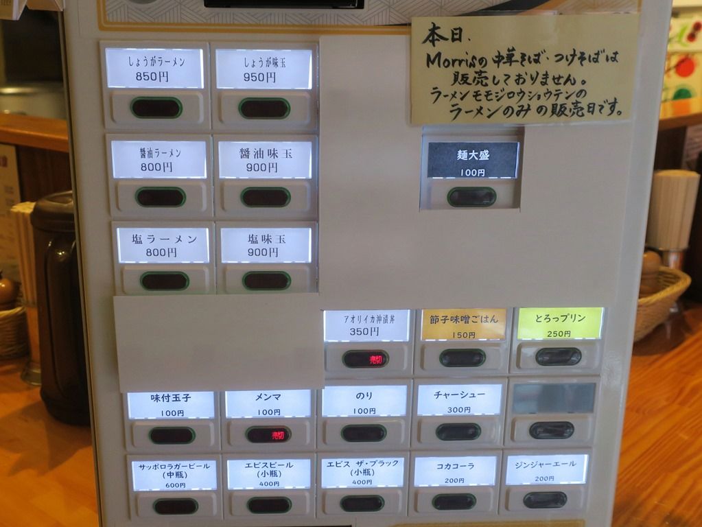 Morrisは自家製麺ですが、モモジロウショウテンもMorris店内の製麺機で製麺した自家製麺。