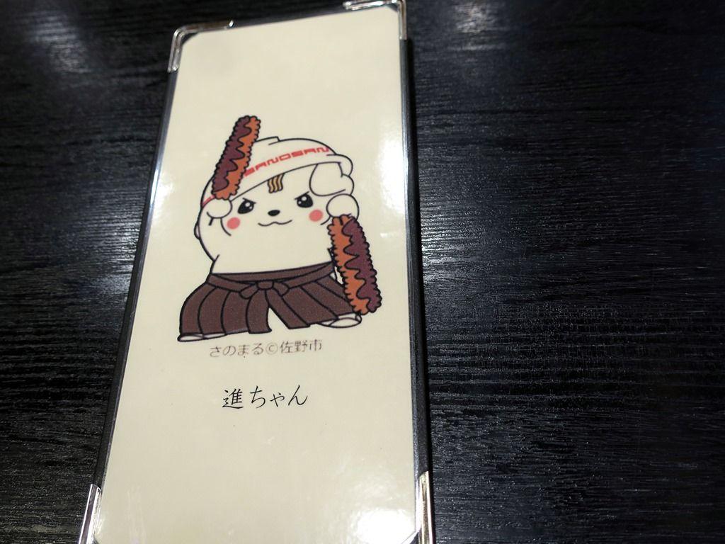 券売機は無く伝票方式後会計制。伝票クリップの裏にもさのまるくん。