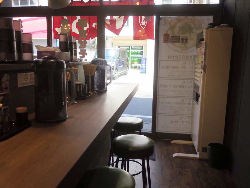 店内は、厨房を囲むL字型カウンター9席(5席・4席)。13:00頃到着で先客2、後客2。スタッフは男性2女性1の3名体制。