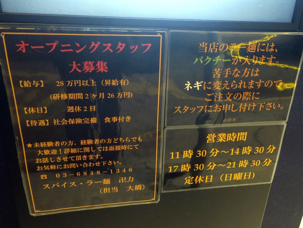 スパイス・ラー麺 卍力は2014年5月7日オープン。店主さんは鬼金棒@神田出身。