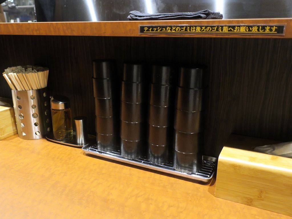 店内は厨房を囲むL字型カウンター12席(9席・3席)。20:20頃到着で先客無しとちょっと拍子抜け。まあお盆で街も電車も閑散としてるし。後客3。スタッフは店主さんとサポートの男女合わせて4名。