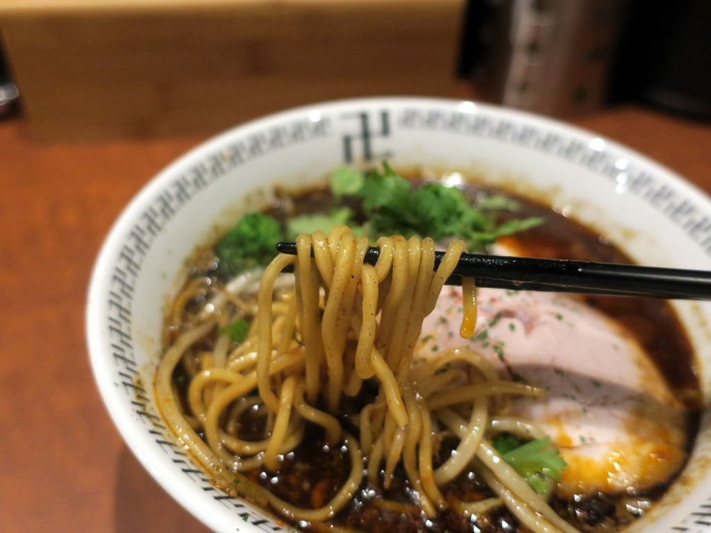 スープは、わずかにとろみを感じる鶏豚魚出汁の味噌味。10種類以上のスパイスを使用とのこと。スパイスはほのかなカレー感もあって、複雑で深淵にして玄妙。めくるめく様なスパイスの風味と味わいがめまぐるしく交錯してすごく美味しい。