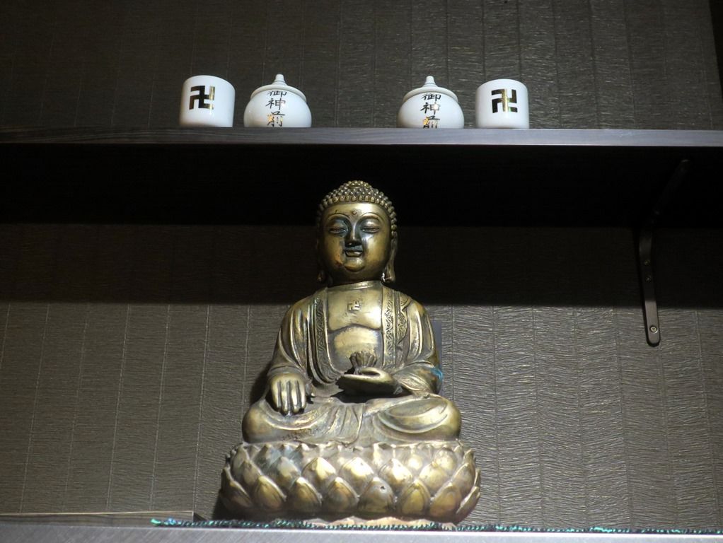 丼の縁の八卦模様が卍模様になったオリジナルな器で着丼。