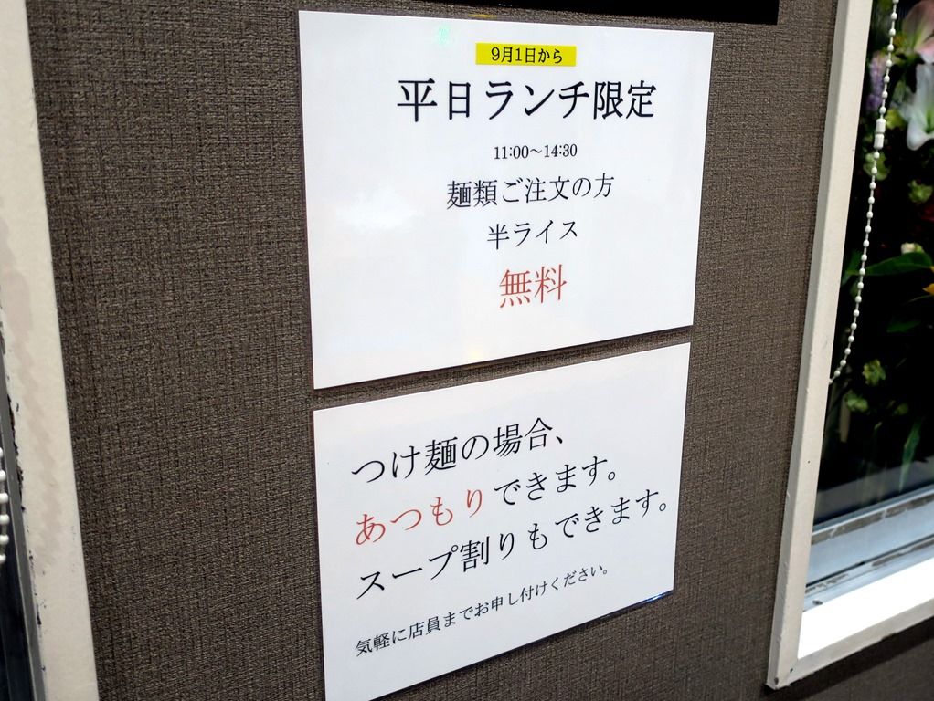 出てきたラーメンは大古洞のそれと瓜二つで器も同じ。それに気づくと、メニューラインナップやランチ半ライスサービス、細麺は麺の固さ指定可とか、共通項がいろいろ見つかります。