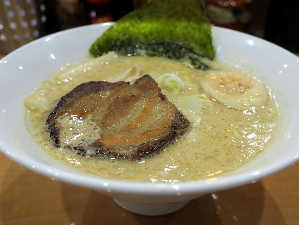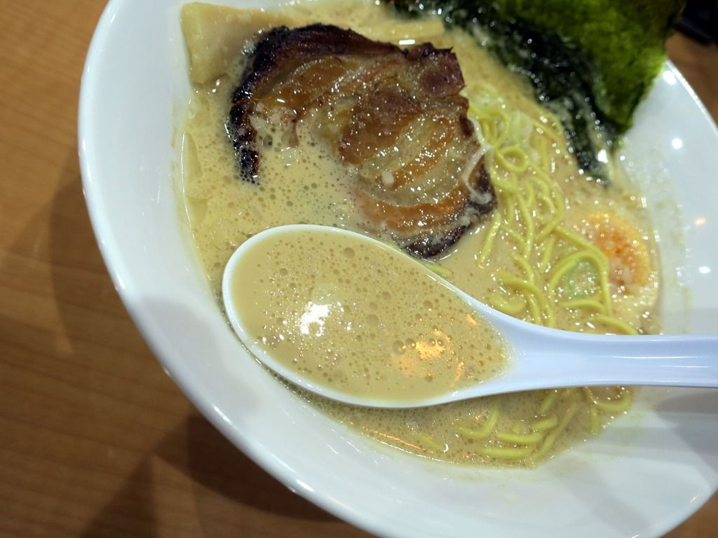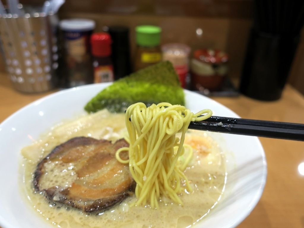 スープは、ライトな豚骨に細かい背脂がビッシリ。スープ自体軽めですが、背脂が多くてちょっとオイリー。辛味かカエシ追加でバランスを取りたいところ。ただ化調は感じられず食後に喉が渇くこともなく、その点は良かったかと。