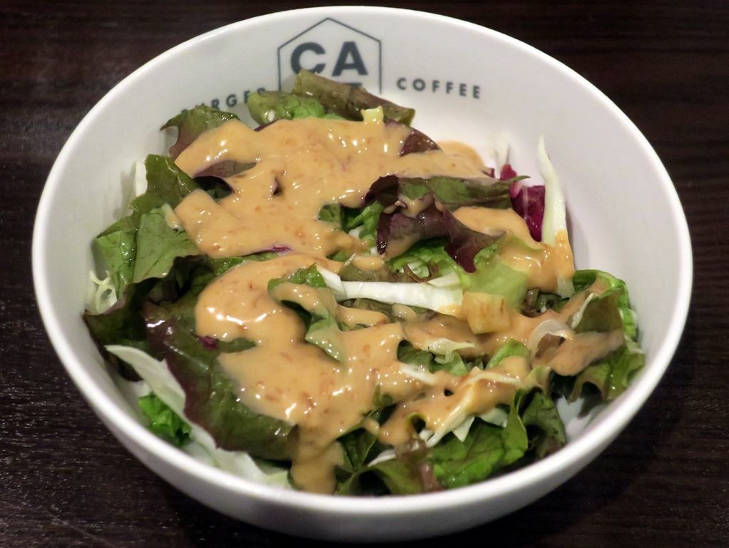 食事を注文するとサービスのサラダの要否と、ドレッシングを和風・胡麻・マヨネーズの中から選ぶように聞かれます。