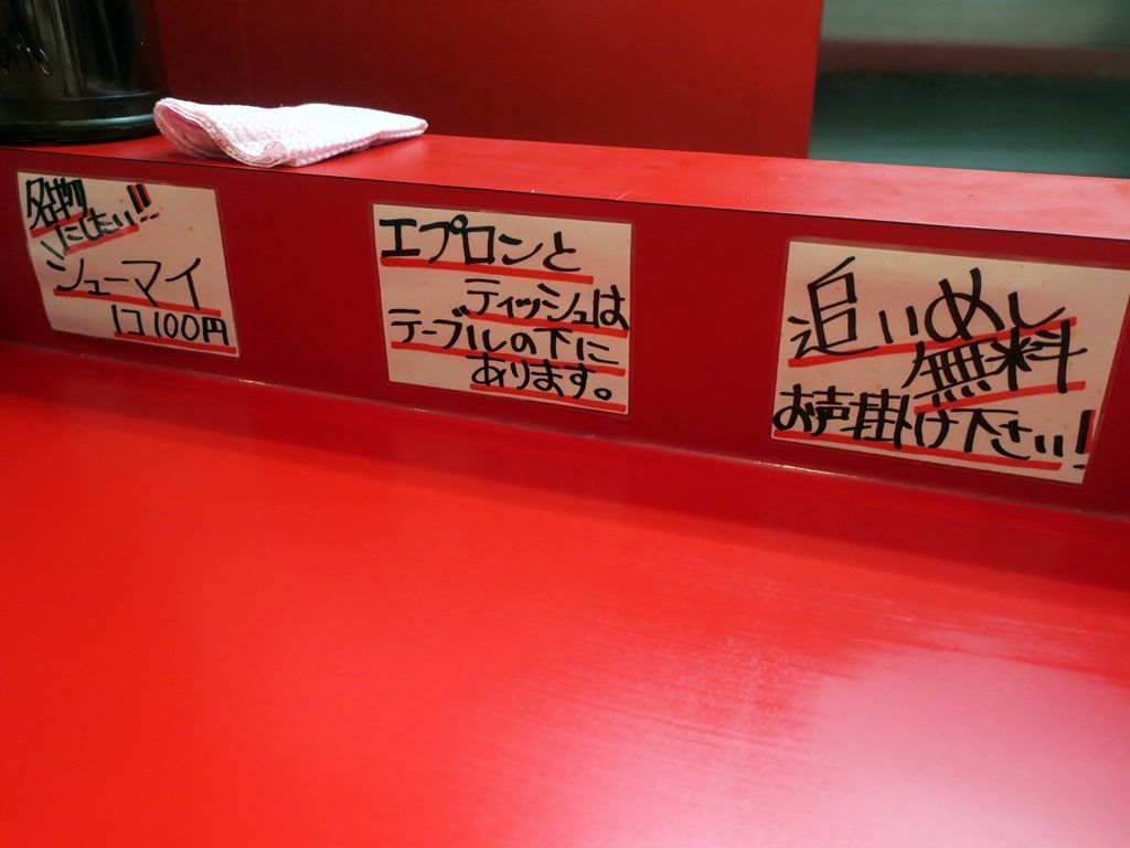 20:20頃到着で先客6、後客10。スタッフは男性のみ3名。BGMはFMJ-WAVE、箸は割り箸、卓上調味料は無し。