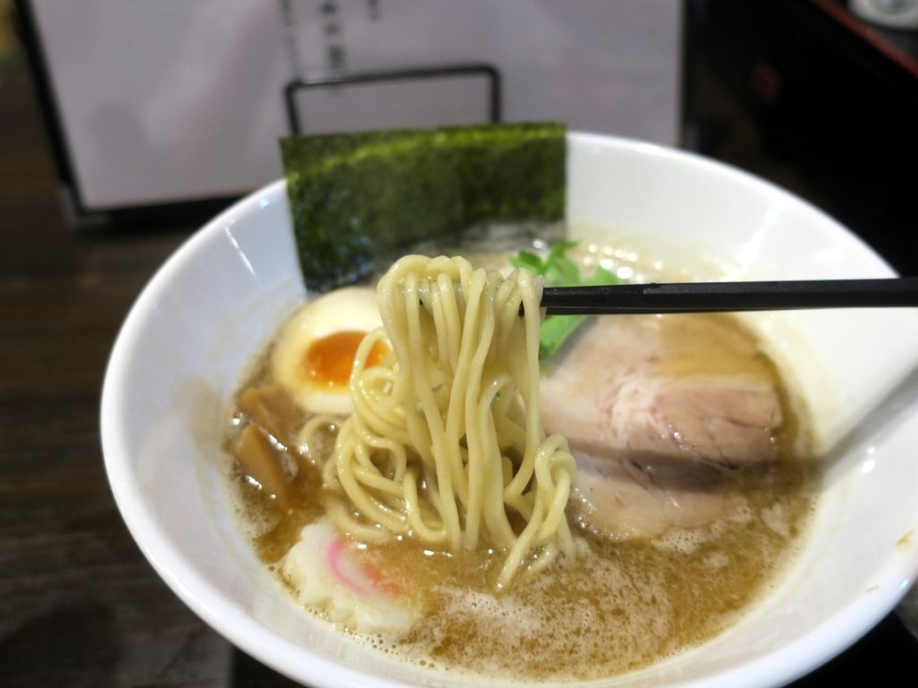 スープはとろっと濃厚な魚介白湯醤油味。メニュー説明によると、新レギュラーメニューで、旬の魚の贅沢なエキスとのこと。複数の出汁を組み合わせた様な深みのあるスープは、確かにオリジナリティがあって印象的な味わい。ちょっと癖というかフックがあって、それが個性的でオンリーワンなテイストを演出。まさにエキスインパクトを具現化した味でとても美味しい!
