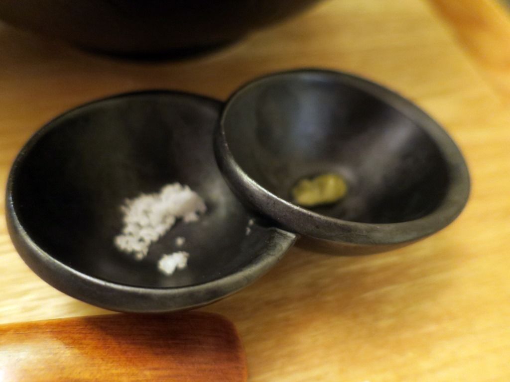 昆布水をかけた麺は昆布のほのかな旨味が効いてそのままでも旨いです。塩とわさびも面白い効果を発揮。つけ汁に浸けるとややしょっばかったのが昆布水効果でまろやかにシフト。進化で食べた塩つけ麺を彷彿とさせるクオリティの高さですごく美味しい!