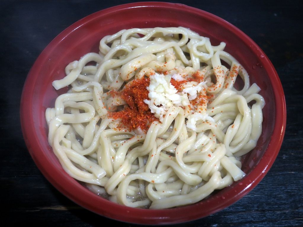 具は無料トッピングの一味唐辛子。コールはニンニク少し。