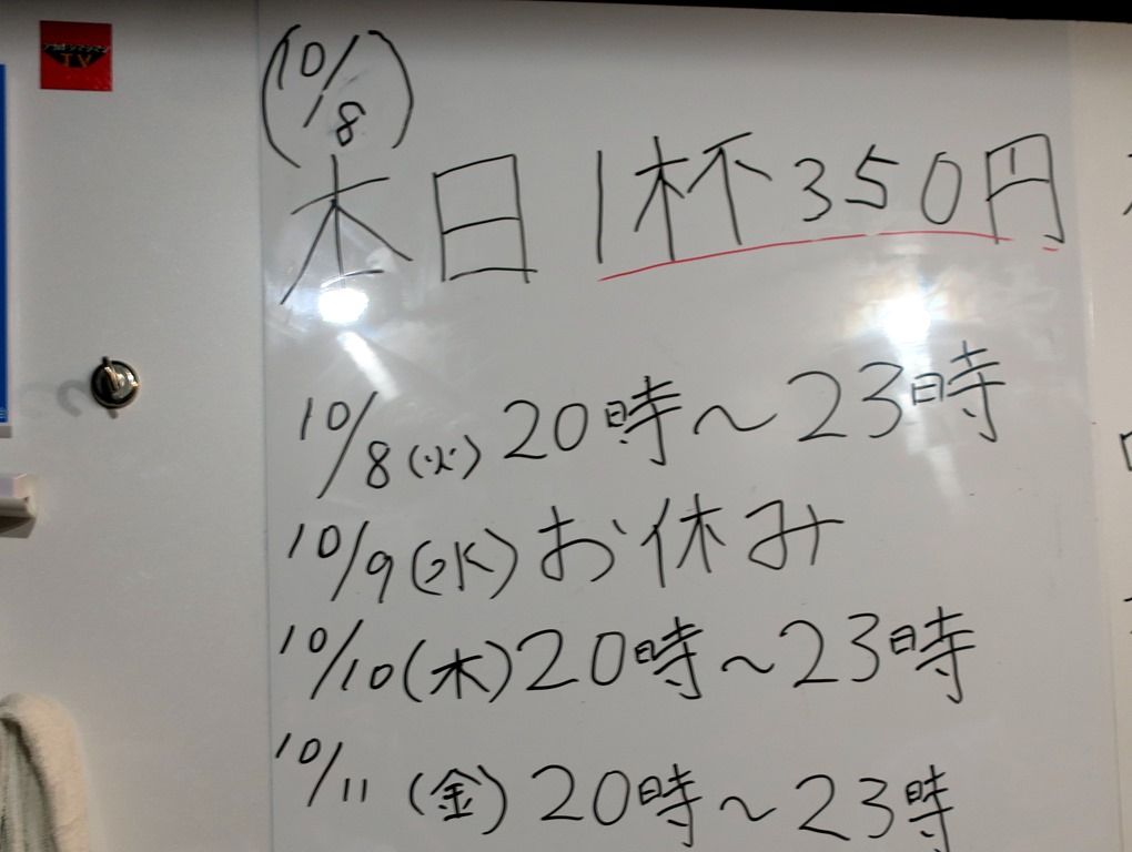 本日は一杯350円。初日100円、以降200円、300円と日を追うごとにちょっとずつ価格アップしてますが、実際定価は450円(安)