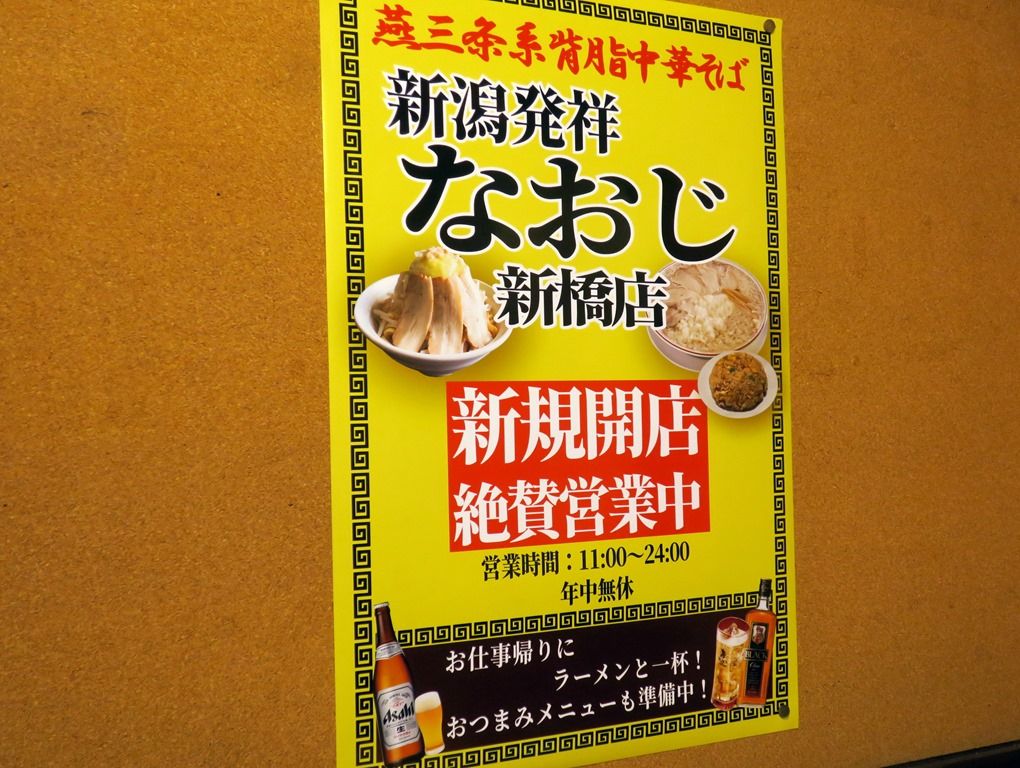 2019年10月9日、新橋の新店「新潟発祥 なおじ 新橋店」へ。