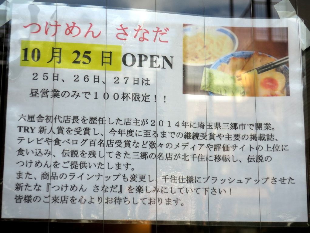 2019年10月26日、北千住の新店「つけめん さなだ」へ。
