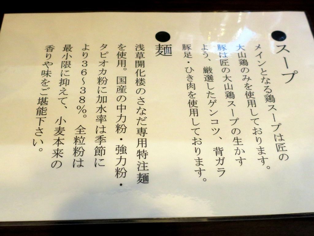スタッフは厨房に店主さんとサポートの男女、外に若女将の合わせて6名。厨房には浅草開化楼の麺箱。